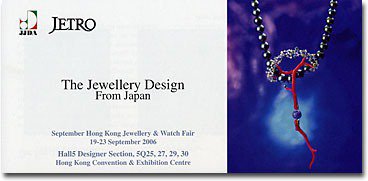 香港ジュエリー&ウォッチフェア 会 期:2006年9月19日~9月23日 会 場:香港コンベンション&エキシビションセンター ホール5、デザイナーセクション5Q25,Q27,Q29,Q30 参加共催:日本貿易振興機構(JETRO) 参加者:11名 池田達治 江口愛子 柏倉主和 清田智誠 田代和美 永井純子 フジタジュリオ 松田充弘 三上雅久 山崎裕見子 山田正司