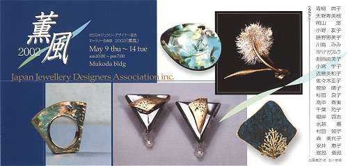 地域交流会員展 金沢で開催 2002「薫風」 会 期:2002年5月9日(木)~14日(火)10:00~19:00 会 場:ムコダ 石川県金沢市堅町40ムコダビル2F TEL 076-262-0222 主 催:JJDA 共 催:株式会社ムコダ