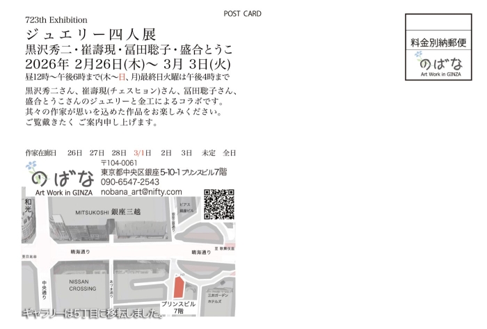 2/20(金)~2/28(土) 13:00~18:00 *この期間は水木金土のオープン