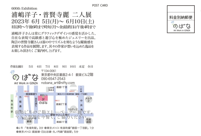 600th Exhibition 浦嶋 洋子・普賢寺 麗 二人展
