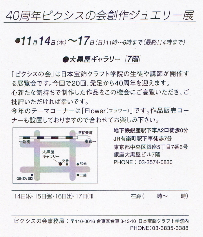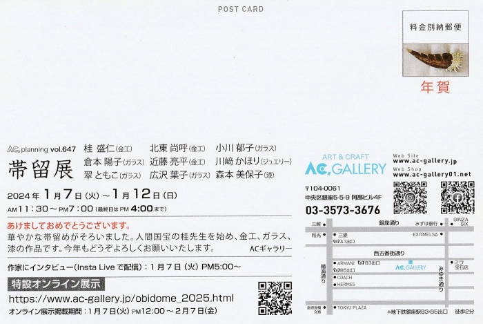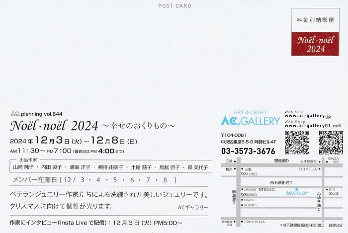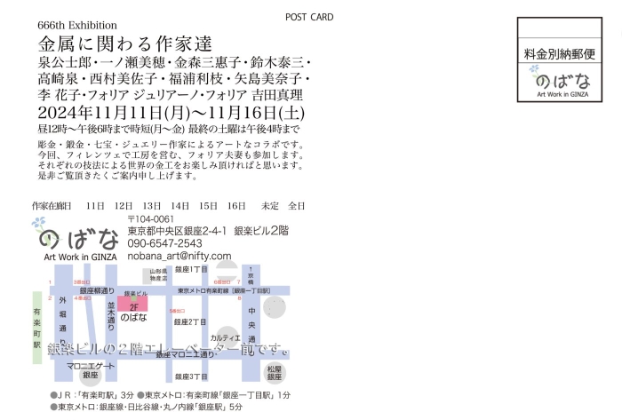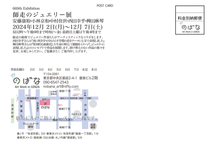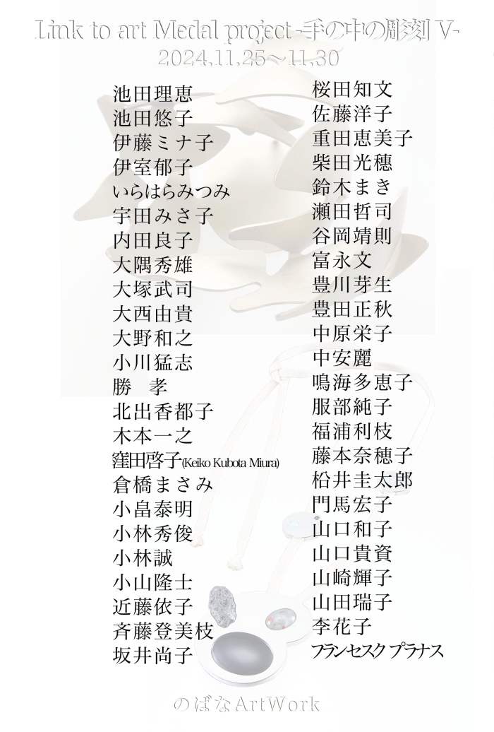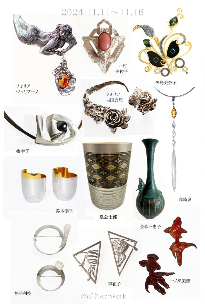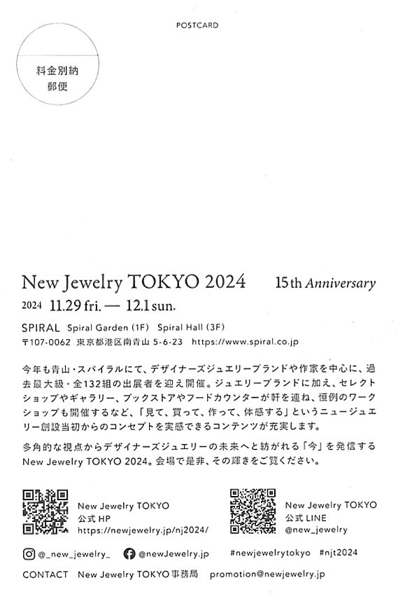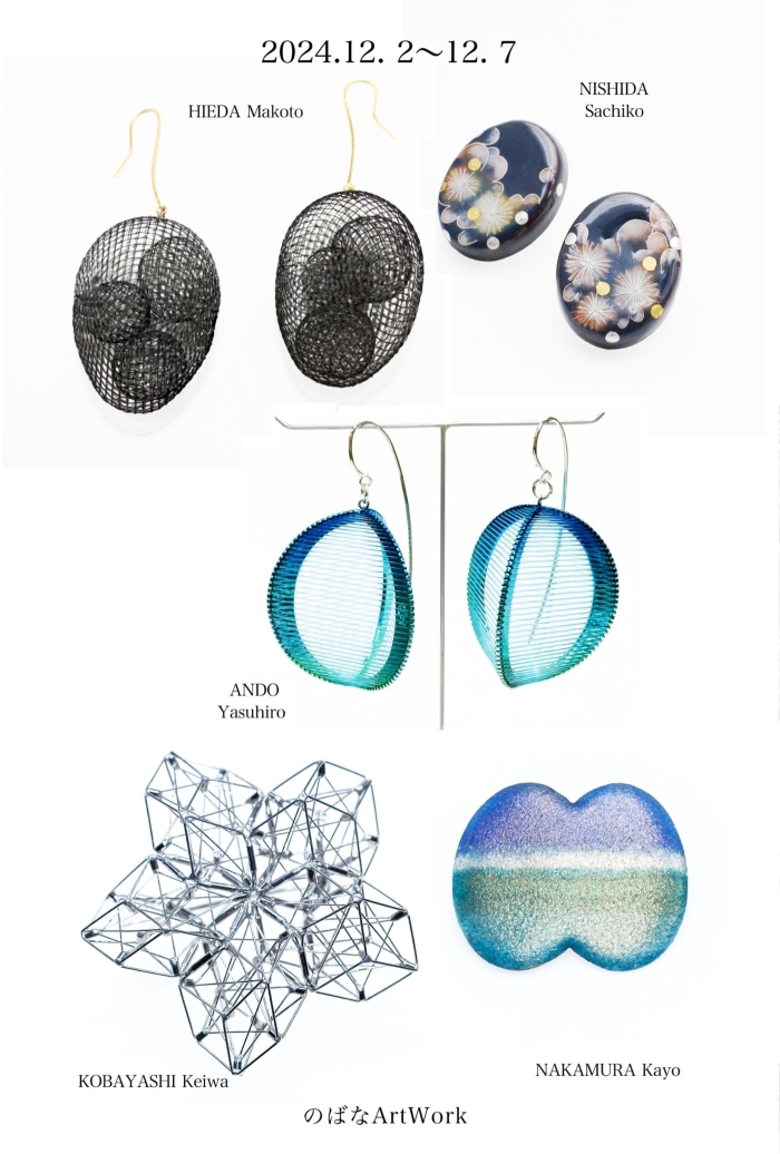 New Jewelry Tokyo 2024 ~15th Anniversary~ 正会員:宇高恵理子、口田薫、小嶋崇嗣、佐伯洋子、佐藤寛朗、高瀬真里、田口史樹、竹内華世、彦根美代、 松浦峰里、三島一能、西澤弘子(キューレーション担当)