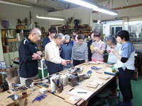 金属の造形にかけてはベテランの金属造形作家 鬼頭正信先生の工房で18名の参加者が教えていただきました。